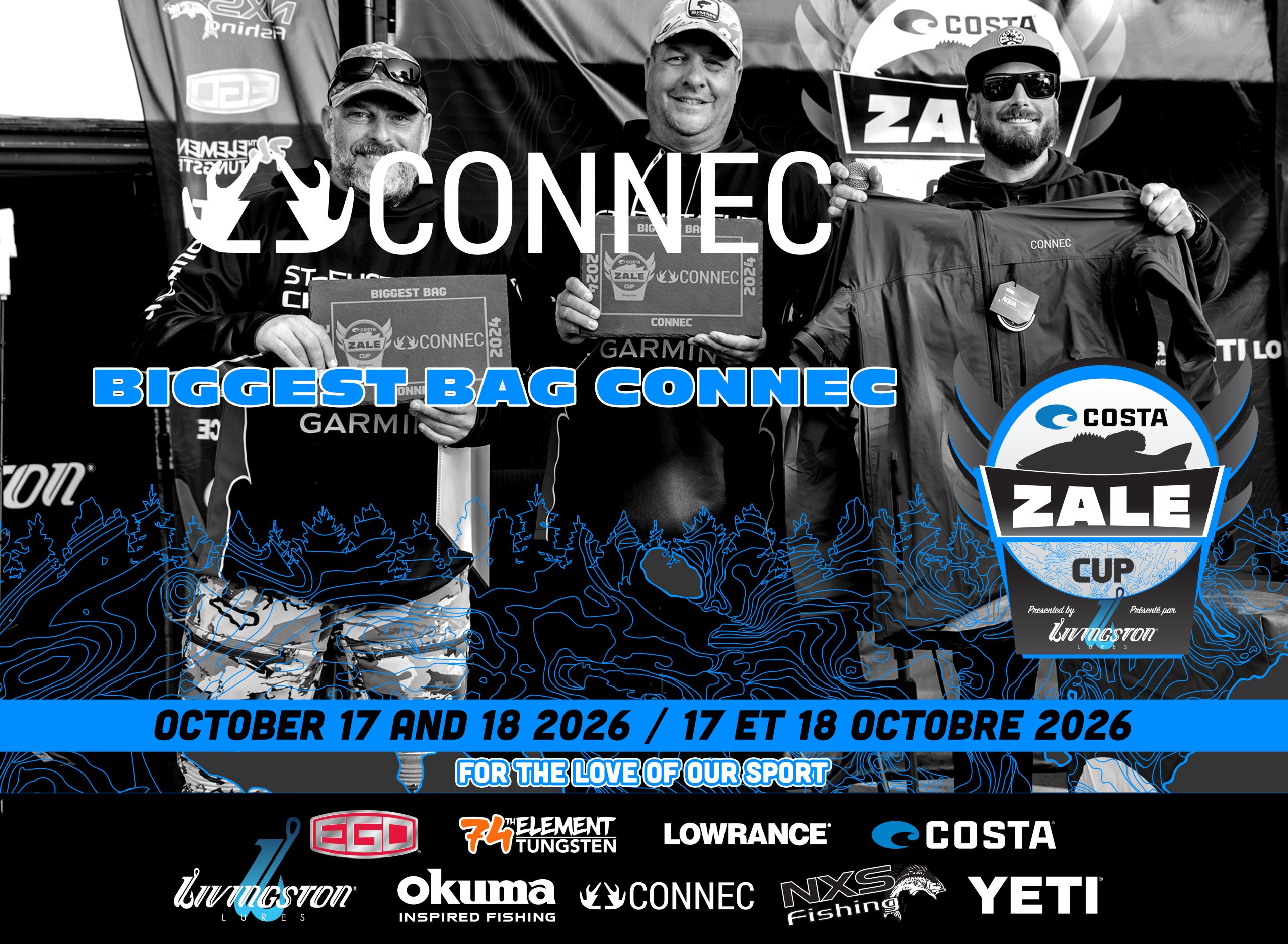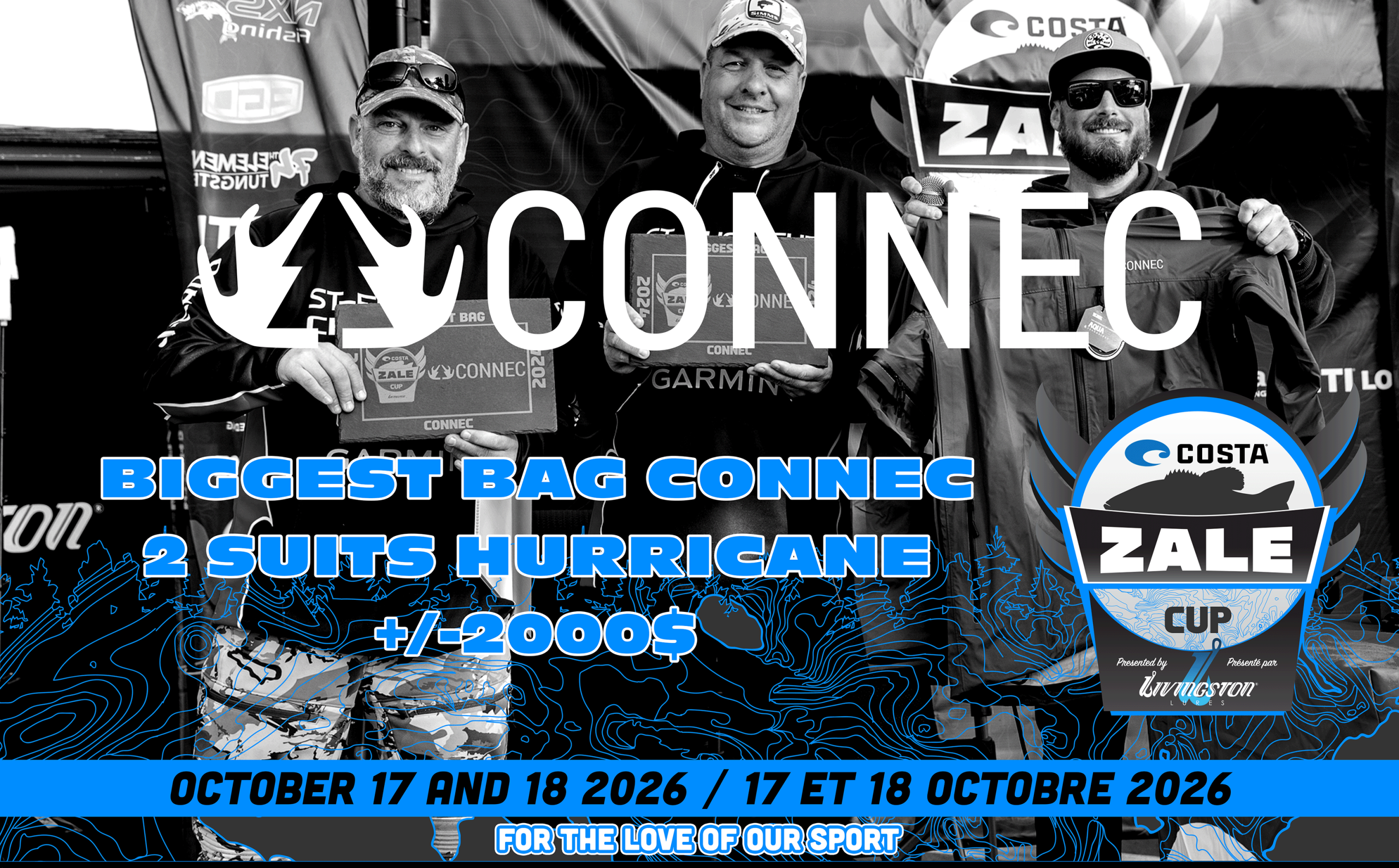 L’équipe qui rapportera le plus gros sac durant les 2 jours du tournoi remportera 2 suit Hurricane de Connec Outdoors. Chaque ensemble vaut +/- 1000$ (En cas d’égalité, l’équipe qui aura fini le plus haut dans le classement remportera le prix et le titre du Biggest Bag Connec.)